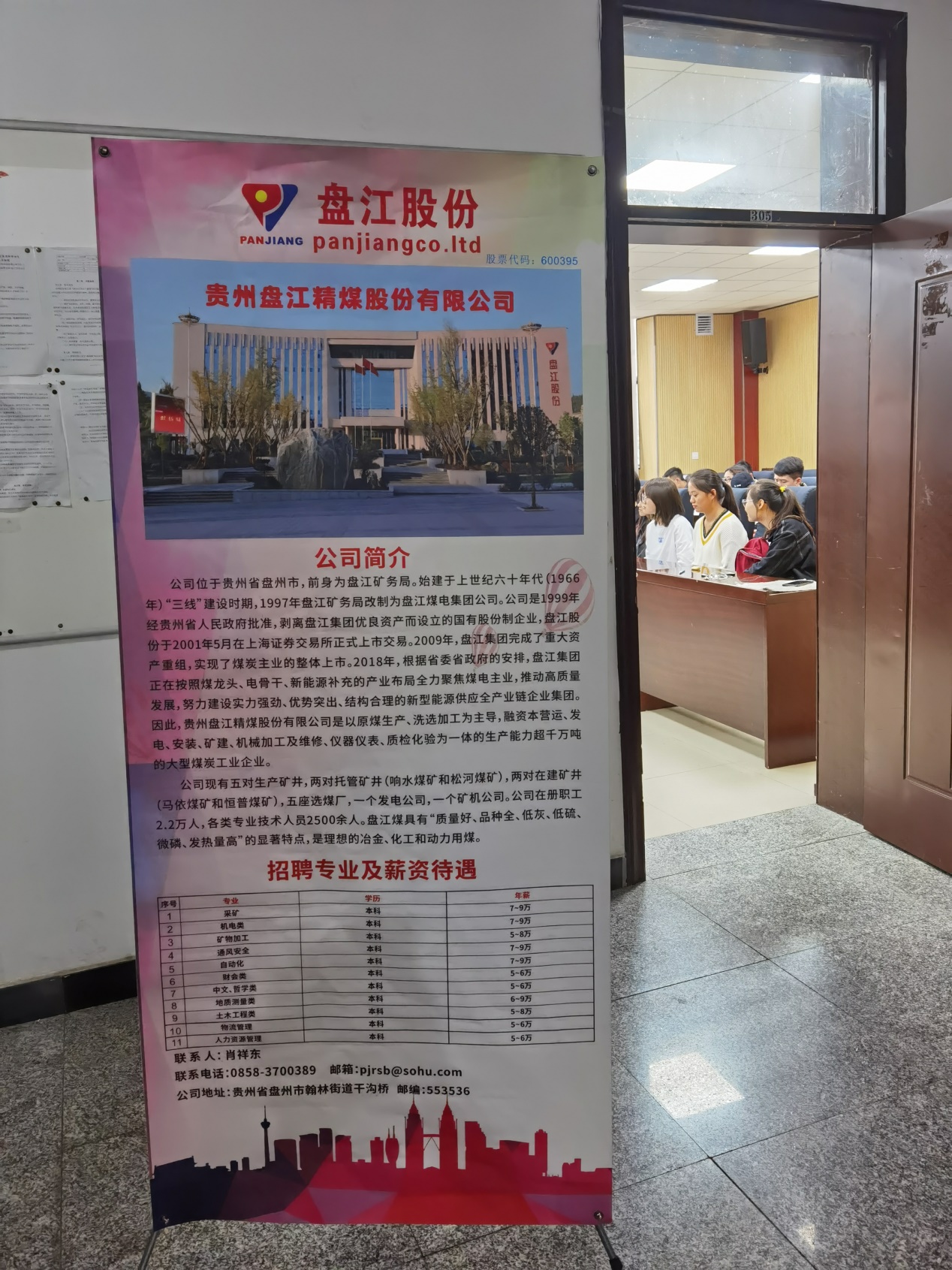 为了更好地拓展公司应届毕业生就业渠道,帮助毕业生高质量的就业。2020年9月24日下午,公司联合贵州盘江精煤股份有限公司在公司南楼305会议室举办了招聘宣讲会。
