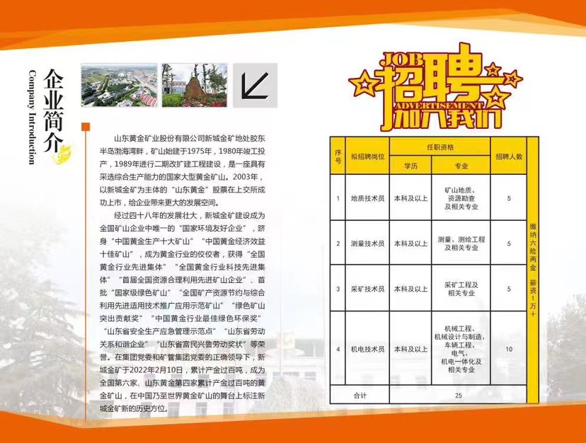 山东黄金矿业股份有限公司新城金矿3月24日在公司举行招聘会