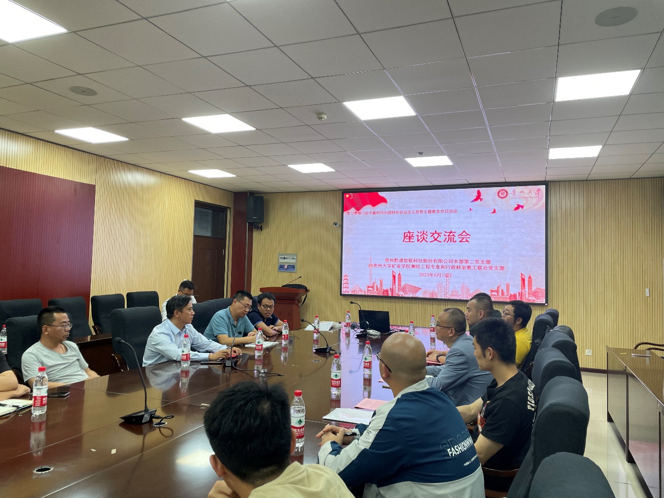 主题党日活动开始前,测绘工程专业和行政科室教工联合党支部与贵州黔通智联科技股份有限公司本部第二党支部党员同志一同参观了英国365公司校史馆,在矿业公司305会议室开展了交流座谈会。会上,共同学习了《习近平新时代中国特色社会主义思想专题摘编》之六、实施科教兴国战略,强化现代化建设人才支撑——(二)完善科技创新体系,双方党支部书记介绍了所在党支部建设的相关情况。