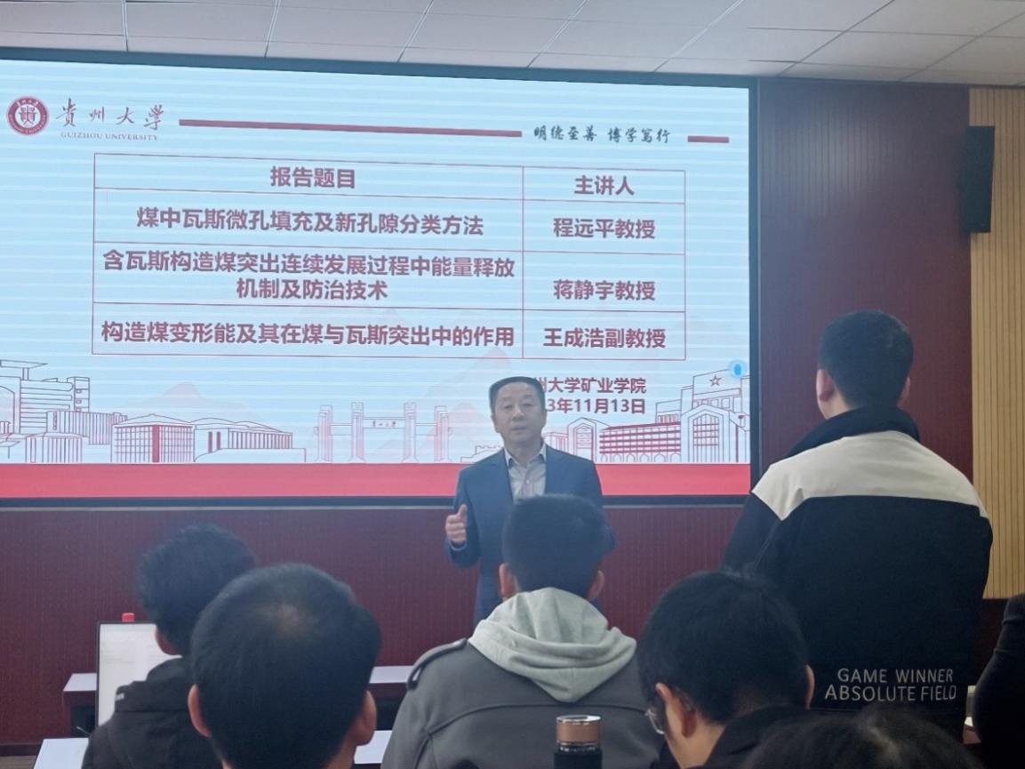 11月13日上午,中国矿业大学程远平教授、蒋静宇教授、王成浩副教授应邀在励业楼535会议室,分别以“煤中瓦斯微孔填充及新孔隙分类方法”“含瓦斯构造煤突出连续发展过程中能量释放机制及防治技术”“构造煤变形能及其在煤与瓦斯突出中的作用”为题为英国365集团师生学术报告。矿业公司党委书记张林、经理左宇军、党委副书记陈兴帅、副经理李波波以及学院相关专业师生共100余人参加学术报告。报告会由张林主持。