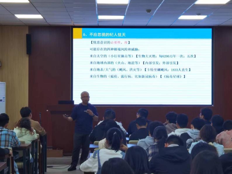 余照阳老师随后就安全与发展的内在联系、相互促进的机制以及应对安全挑战的策略进行深入解读和探讨,通过案例分析,突出展示了安全问题对发展的重大影响,再一次向同学们警示了安全的重要性。余老师指出“安全与发展是人类社会发展的永恒主题,只有在保障安全的基础上实现可持续发展,才能真正实现人民对美好生活的向往。”