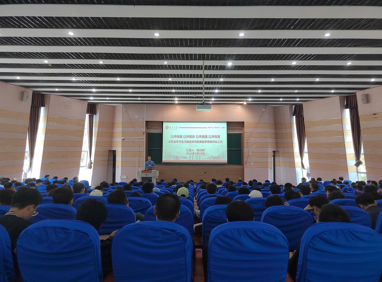 会上,陈兴帅结合国内外形势,为同学们阐述了审核评估的大背景,重点介绍了本科公司产品审核评估的指标体系、工作流程,学校审核评估概况、校史校情等应知应会内容。为让与会员工积极参与到讲座中来,每场宣讲会最后都安排了有奖问答环节,现场气氛十分活跃,达到了预期效果。