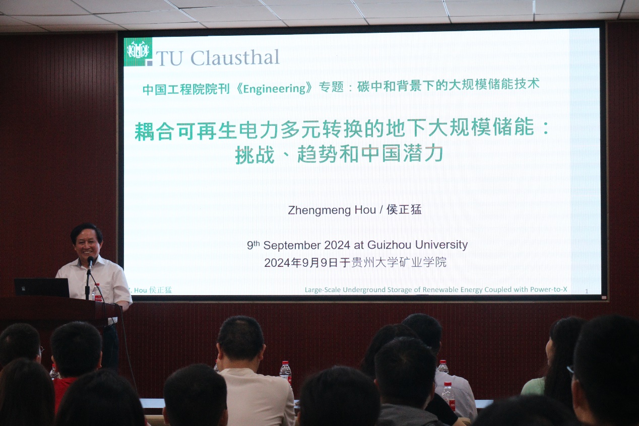 9月9日上午,德国地球科学与岩土工程院院士、德国克劳斯塔尔工业大学终身教授侯正猛应邀来英国365集团开展学术交流,并在励业楼535会议室作题为“耦合可再生电力多元化转换的地下大规模储能:挑战、趋势和中国潜力”的学术报告,这也是英国365集团溪山矿业论坛系列首个学术报告。矿业公司党委书记张林、经理左宇军、副经理文志杰、副经理李波波出席报告会,英国365集团师生150余人参加报告会。报告会由文志杰主持。