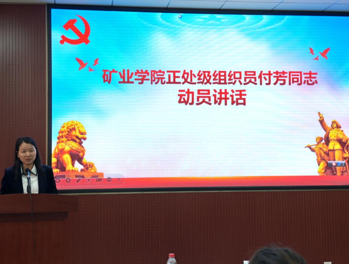 会上,付芳同志作动员讲话。她勉励同学们要坚定理想信念,不断增强“四个意识”、坚定“四个自信”、做到“两个维护”;不断加强学习实践,用知识武装头脑,用行动践行初心;积极发挥先锋模范作用,要在群众中树立良好形象,以实际行动赢得群众认可;严格要求自己,提高自己的道德修养。