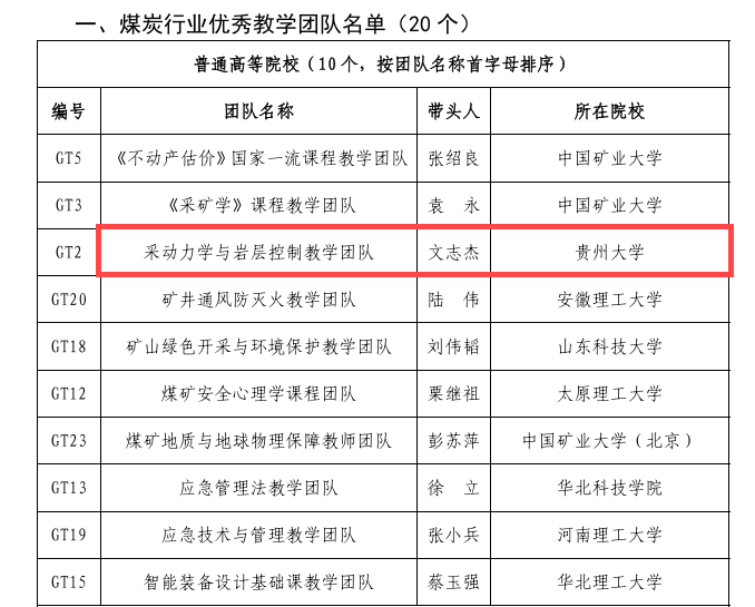 近日,英国365集团采动力学与岩层控制教学团队获得煤炭行业优秀教学团队,英国365集团副经理文志杰教授为该团队的带头人。
