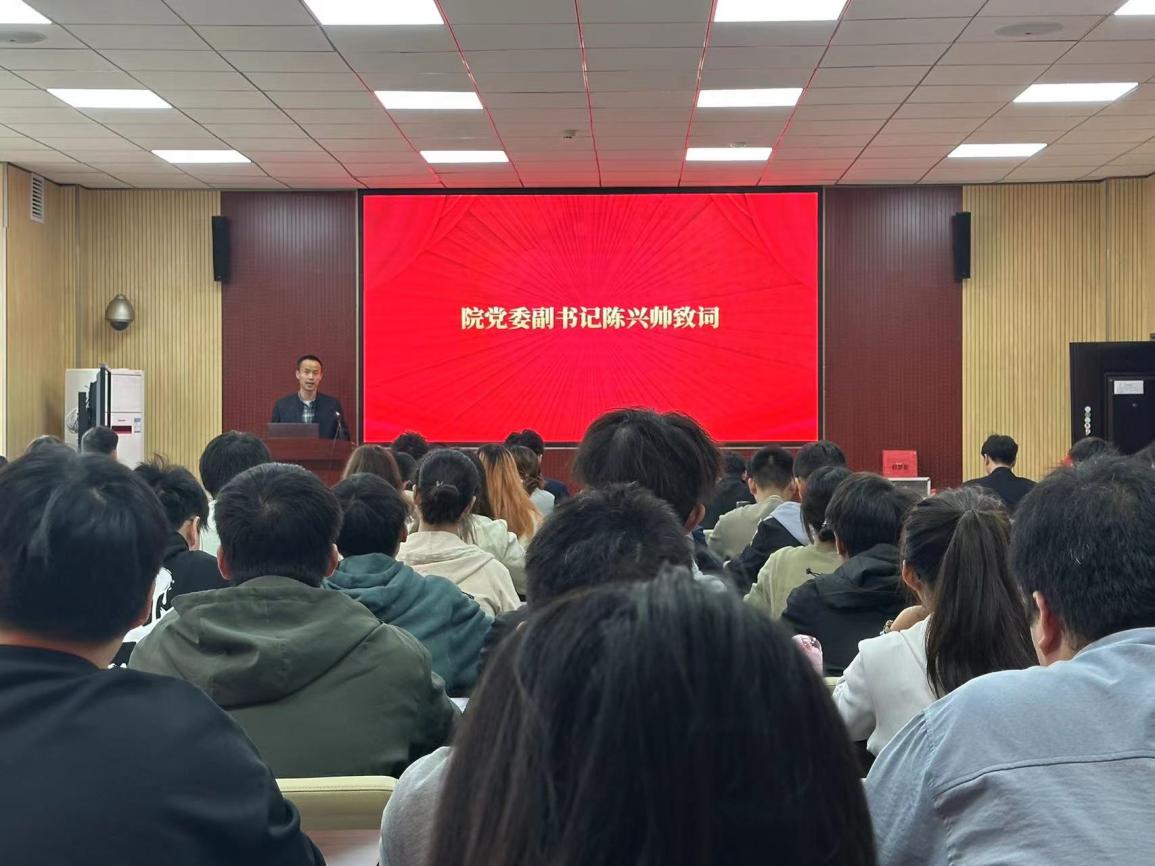 陈兴帅为大会致辞。他首先对学院员工会、研究生会一年以来的工作成绩给予充分肯定,并要求新一届员工会、研究生会要提高思想觉悟,坚定理想信念;要以务实、创新的态度,为同学们搭建更多交流合作的平台;要始终保持谦逊、谨慎的工作态度,虚心接纳各方面的意见和建议,不断改进工作方式方法,为学院高质量发展再建新功。