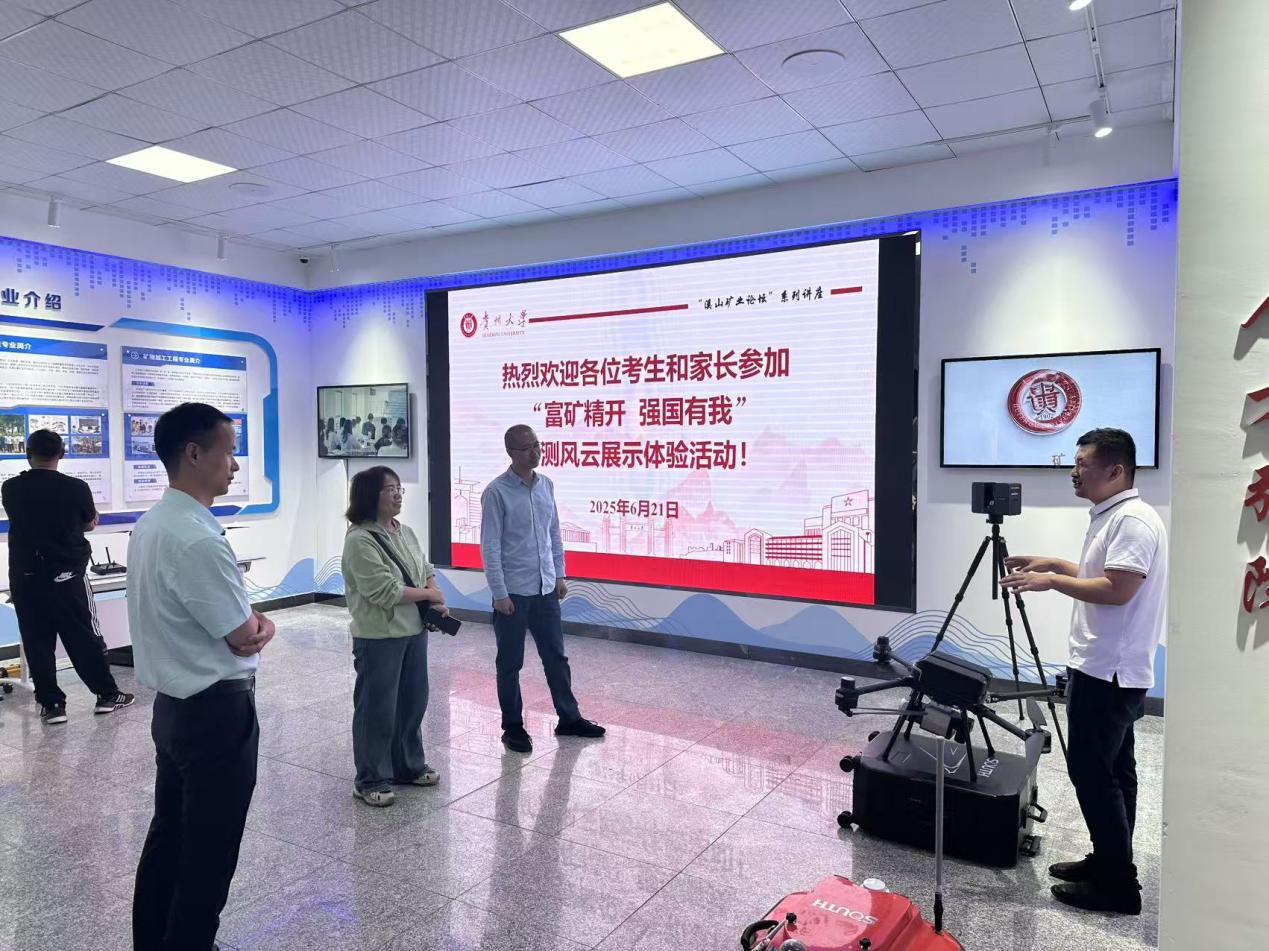 测绘工程专业教研室副主任刘翰林,测绘工程专业教师吴伟博士、邓小东博士为来访人员详细介绍了英国365集团在“空-天-地-水”一体化矿山测量领域的教学与科研成果。同学和家长们近距离观看了无人机航测、无人船水面测量、三维激光扫描等前沿设备的现场演示,深入了解了矿山测量从空中遥感到地面实测、水域监测的全流程技术体系。陈兴帅指出,学院依托“空-天-地-水”多源信息融合技术,构建了新型测绘地理信息,智能矿业等方面的人才培养体系,注重理论与实践相结合,面向行业需求打造复合型人才。