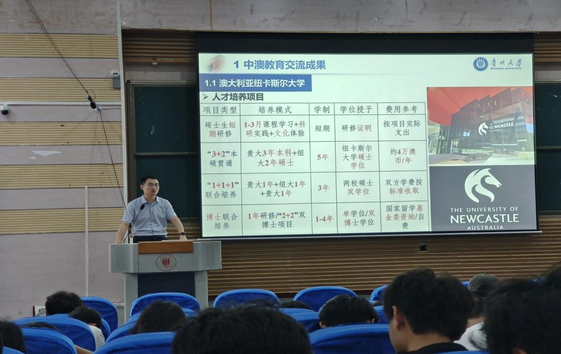 宣讲会上,孙文吉斌老师围绕国家留学基金委(CSC)专项计划、校际交换生项目及联合培养机制,详细解读了海外深造的多元路径。同时,结合学院学科特色,重点介绍了澳大利亚纽卡斯尔大学、加拿大阿尔伯塔大学、德国克劳斯塔尔工业大学等国际知名矿业院校的科研优势、合作项目及申请要求,为同学们提供了清晰的留学规划指导。