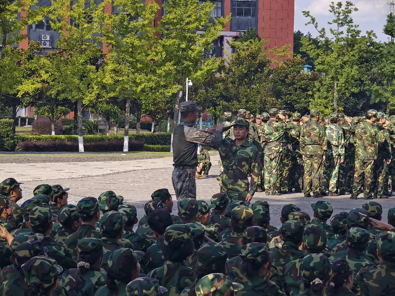 训练从最基础的停止间动作开始。“立正”“稍息”“转向”——在教官铿锵有力的口令声中,每一个动作要领都深深烙印在同学们的肌肉记忆里。这些看似简单的动作,不仅是军人的基本功,更是同学们领悟纪律与服从的第一课。教官们耐心细致,对动作不到位的同学进行一对一指导,确保每个人都不掉队。