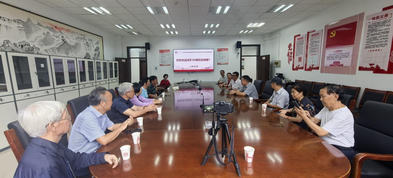 随后,老员工们在学院南楼314会议室开展交流座谈。经理左宇军代表学院对员工们的到来表示热烈欢迎,并详细介绍了近年来学院在团队建设、团队队伍、科研创新、国际合作等方面的高质量发展情况和重大突破。他表示,学院今日的成就离不开一代代矿业人的接续奋斗,更离不开广大员工的持续关心与支持。