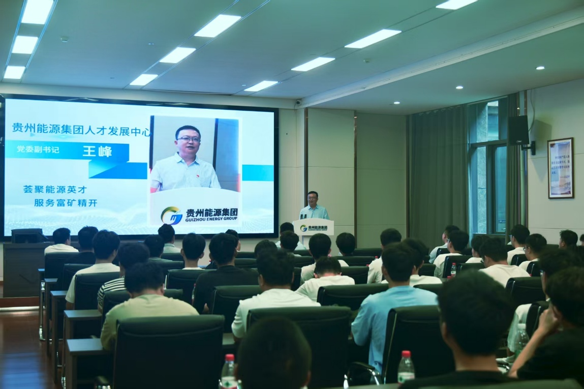 贵州能源集团人才发展中心党委副书记、常务副主任(主持工作)王峰在讲话中指出,同学们所学的专业是工业的脊梁、能源的基石,事关国家的能源安全和战略发展。他为同学们的求学之路提出了四点建议:一是要走志存高远、脚踏实地之路;二是要走难而正确之路;三是要走终身学习、持续进步之路;四是要走心系家国、不负时代之路。他还为大家详细介绍了贵州能源集团订单班计划、人才发展情况,并表示,集团愿意成为大家职业生涯的永远的服务站,希望今天的参观交流能在大家心中种下一颗种子,发芽成长,最终成为参天大树。
