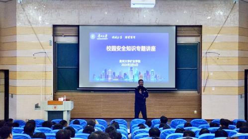 To strengthen campus safety awareness and protect the personal and property safety of teachers and students, on the evening of March 6th, Officer Zhao Pulin from Songshan Police Station in Huaxi District was invited to deliver a lecture on campus safety education in the West Building Lecture Hall 117. Chen Xingshuai, Deputy Secretary of the Party Committee of the School of Mining, and Xie Yaqiu, head of the Student Affairs Section, attended the lecture, which was participated by over 200 faculty members and students from the school. The lecture was chaired by Chen Xingshuai.
